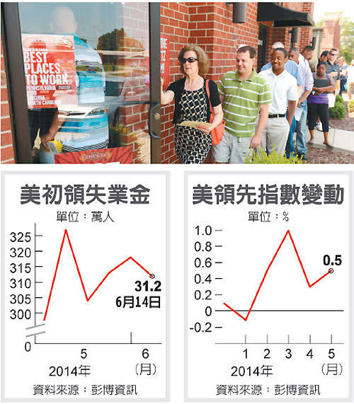 美國上周首次申請失業救濟金人數下降,且維持在接近經濟衰退前的低點,顯示勞動市場穩定改善。同時,5月經濟領先指標連續第四個月攀升,也反映經濟動能持續增強。