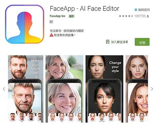 此次網友跟風的變老app則是來自「FaceApp」,至今在Goolge Play商城已累積超過1億次的下載量,並且獲得4.5分高評價,同時也在iOS商城的「照片與影音」類別中排名第一熱門。